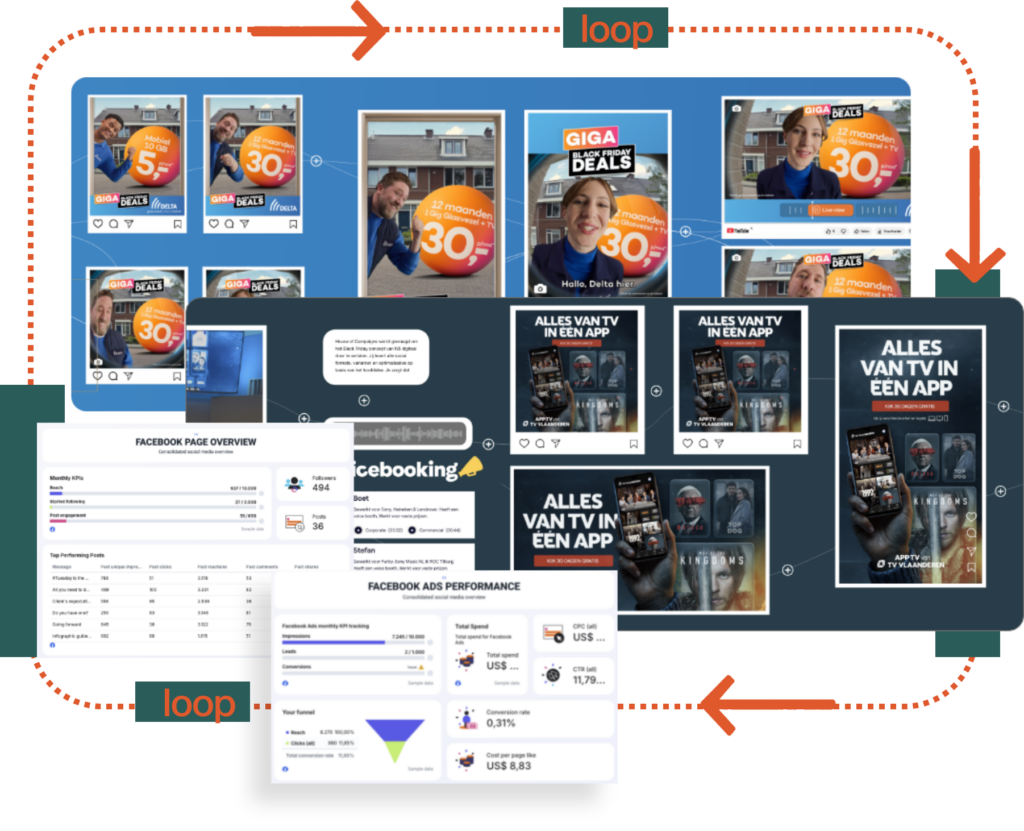 Paid media wordt ingezet op creatie die zich al heeft bewezen. Daardoor daalt verspilling en stijgt efficiëntie. Learnings uit organic en paid versterken elkaar en leiden tot betere, onderbouwde mediakeuzes.